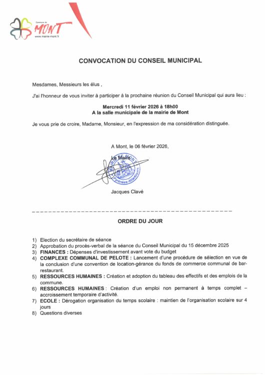 - 11022026 05 RESSOURCES HUMAINES : CREATION ET ADOPTION DU TABLEAU DES EFFECTIFS ET DES EMPLOIS DE LA COMMUNE DE MONT