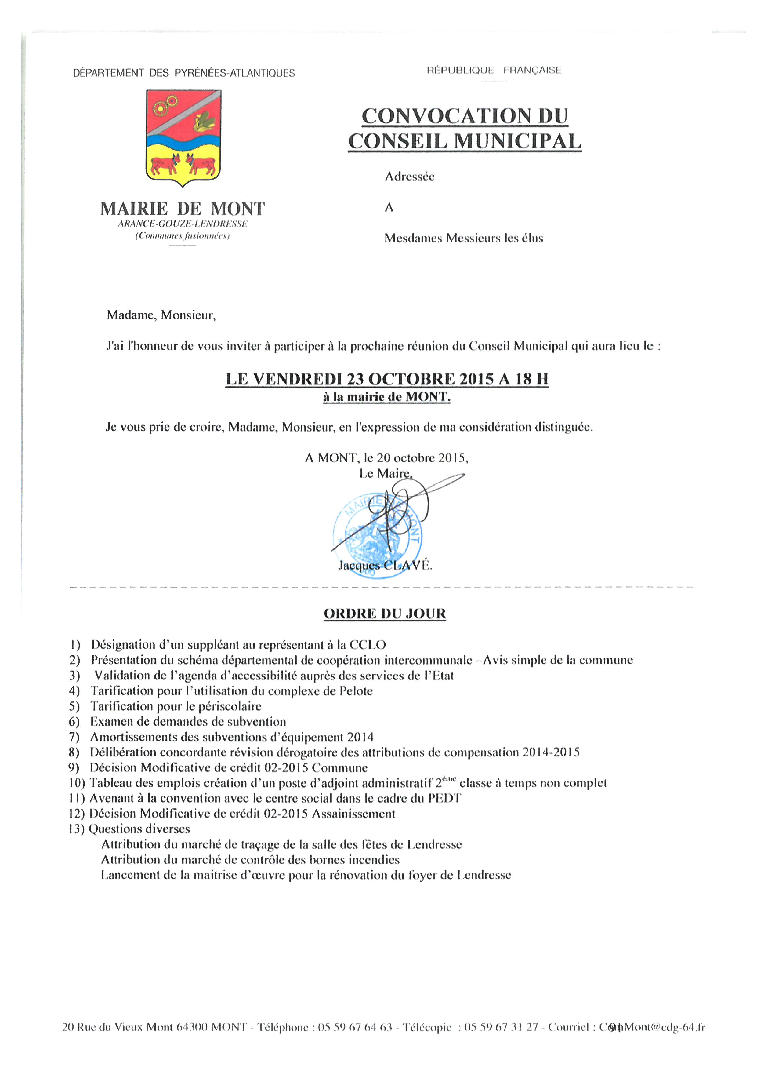 - Désignation d'un suppléant au représentant de la commune au sein de la CCLO - 23 octobre 2015