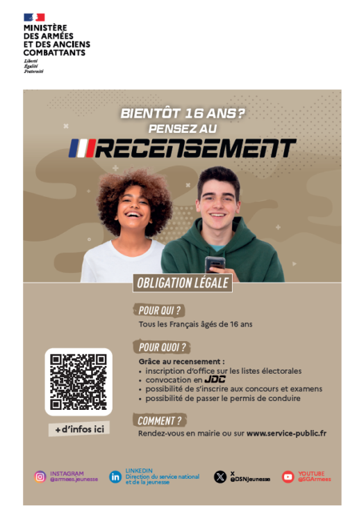 Bientôt 16 ans ? Pensez au recensement