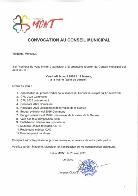 Conseil municipal du vendredi 24 avril 2026