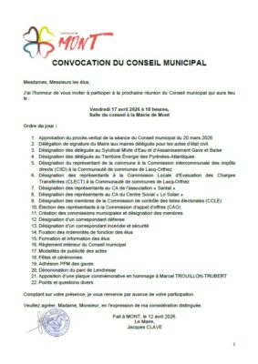 Mairie de Mont, 20 rue du Vieux Mont, 64300 MONT - Téléphone : 05 59 67 64 63 - Fax : 05 59 67 31 27 - Courriel : accueil@mairie-mont.fr